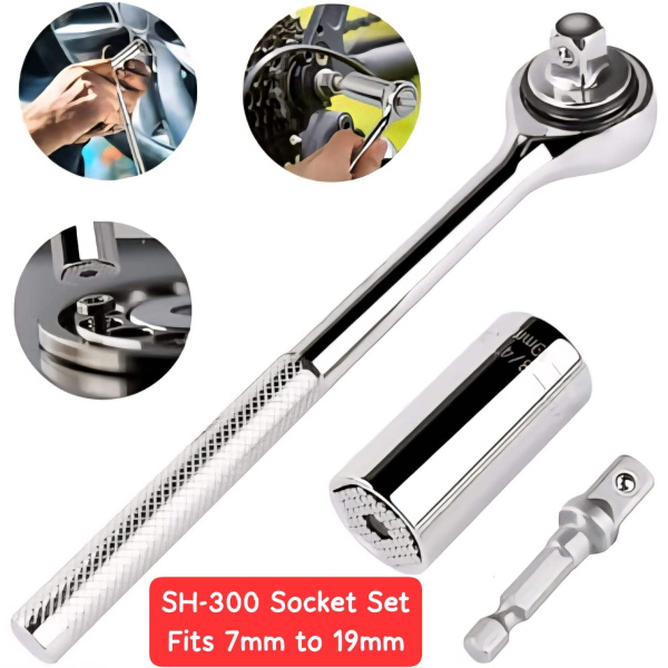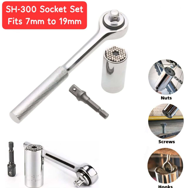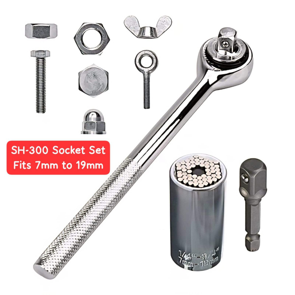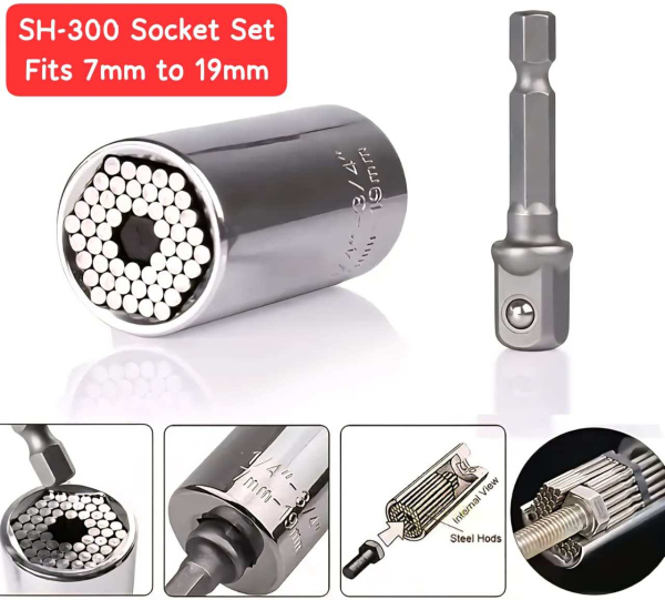 1 Second Socket, Universal Socket Set, Fits 7mm to 19mm |