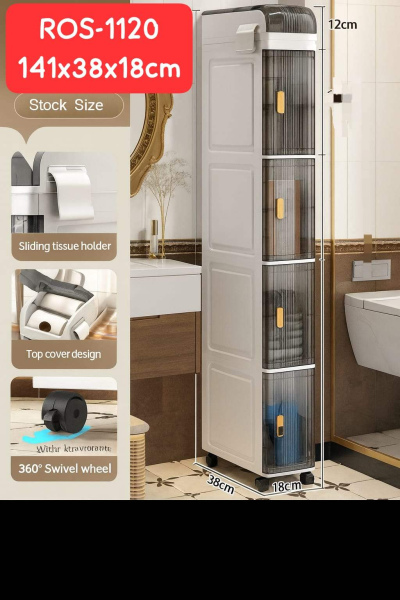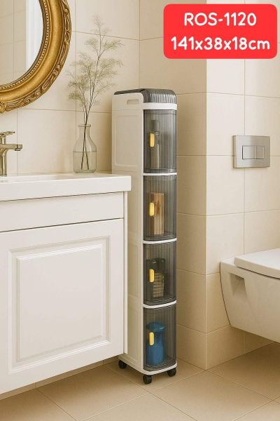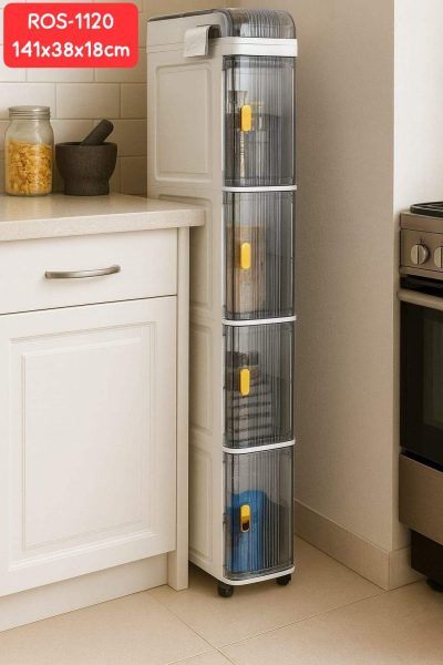 خزانة متحركة مصممة خصيصة للأماكن الضيقة والزوايا الصغيرة بالمبطخ أو الحمام.