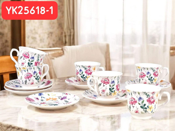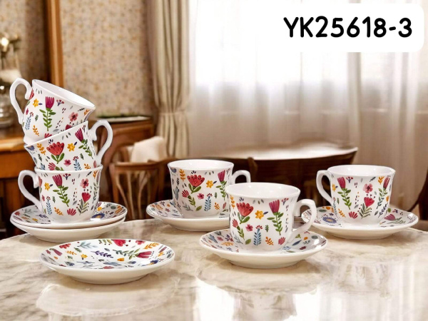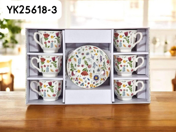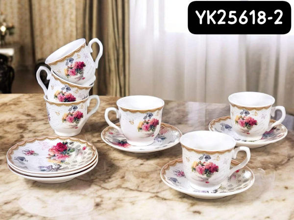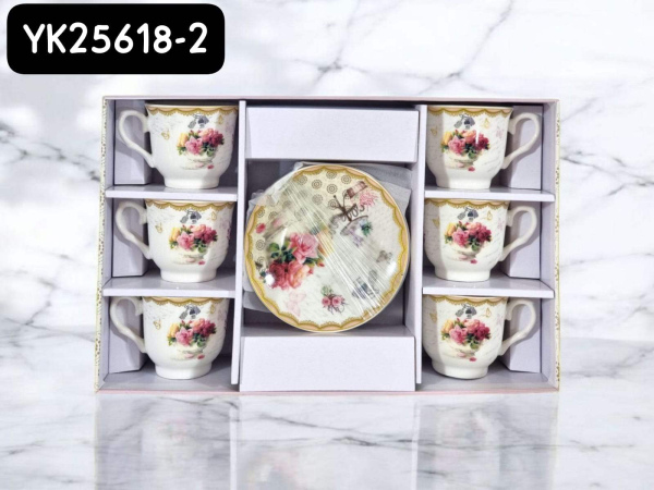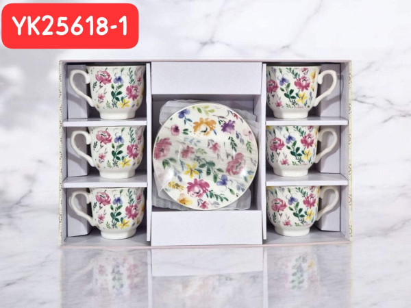 طقم قهوة سيراميك رائع مؤلف من ٦ فناجين مع ٦ صحون.