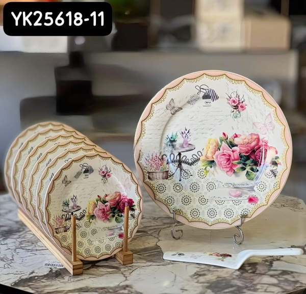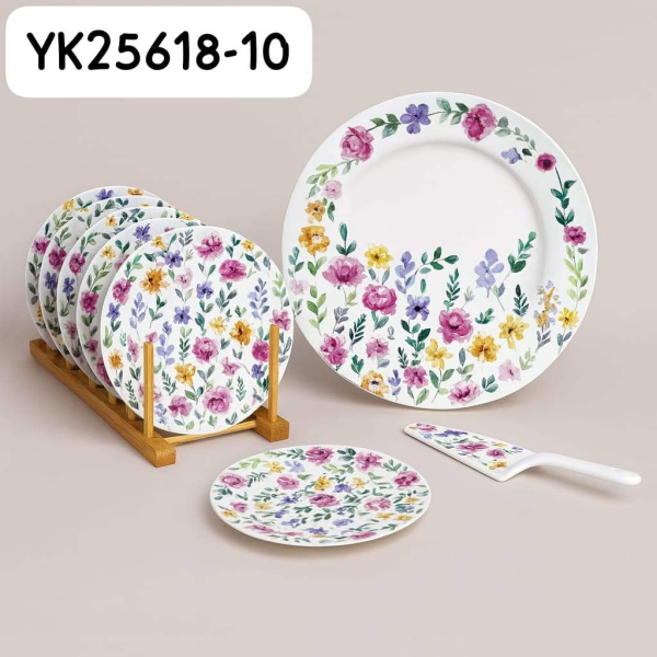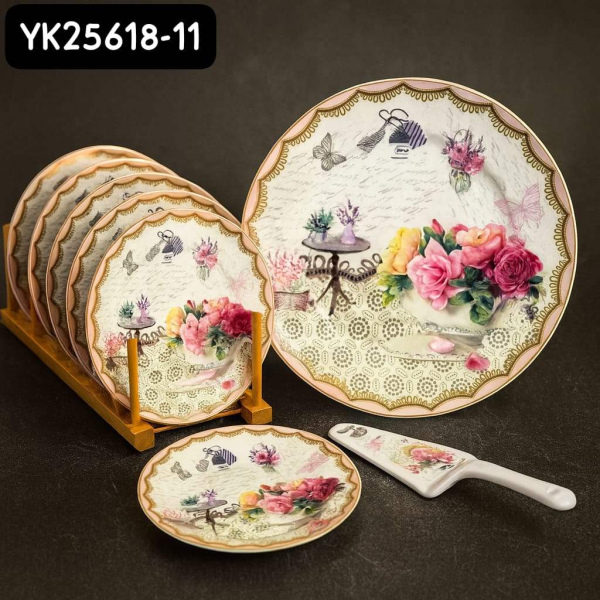 8 Pcs Cake Plate Set Floral Design\\\\\\\\\\\ |