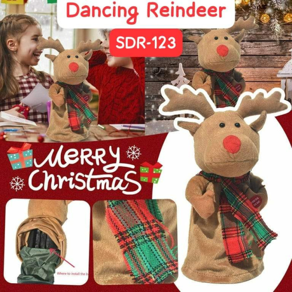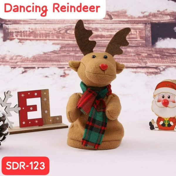 غزالة بتهز وبترقص مع موسيقى واغاني كريسماس، بتشتغل عا بطاريات، الحجم تقريبا ١٦ سنتم