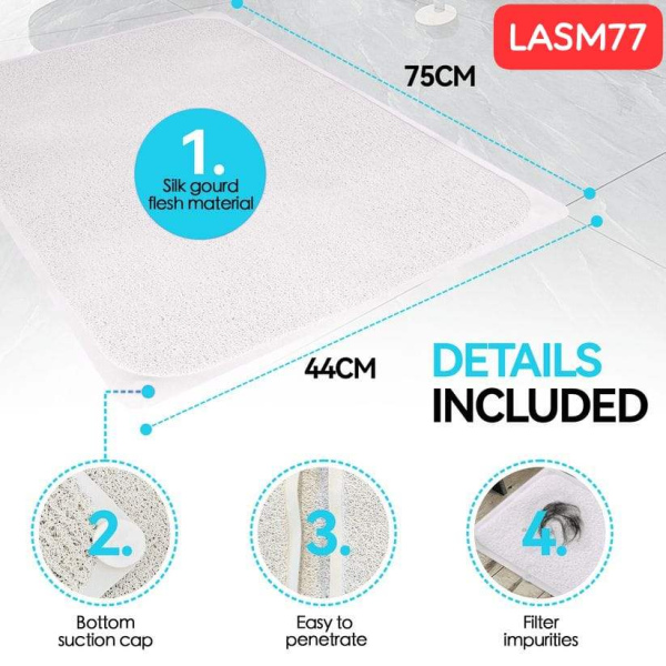 دعسة بتصميم مثل ليفة الحمام، مصنوعة من مطاط صناعي لين جدا ومريح، بنفس الوقت بتسمح للمياه تتسرب عبرها بالكامل، من دون ما تتأثر بالرطوبة، ارضها وسطحها اثنينهم مانعين للإنزلاق.