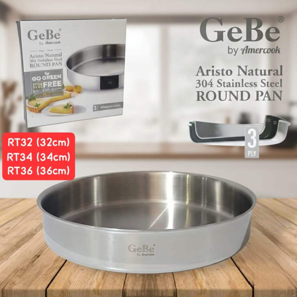 Original GeBe Round Stainless Pan 36 cm different sizes