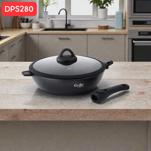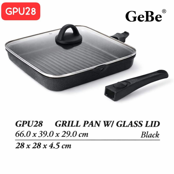 Original Gebe Square Grill Pan and Wock Pan with Removable Handle |