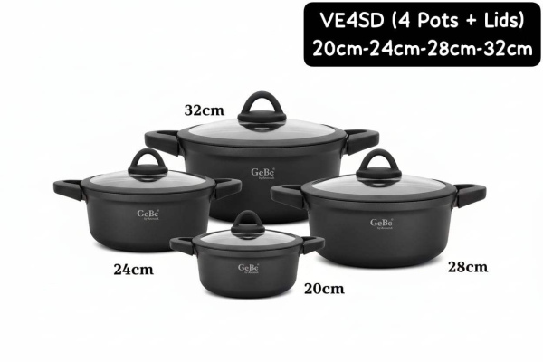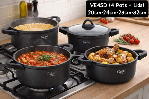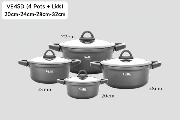 Original Gebe by Amercook Pot Set (4 Pots + 4 Lids) 20cm-24cm-28cm-32cm