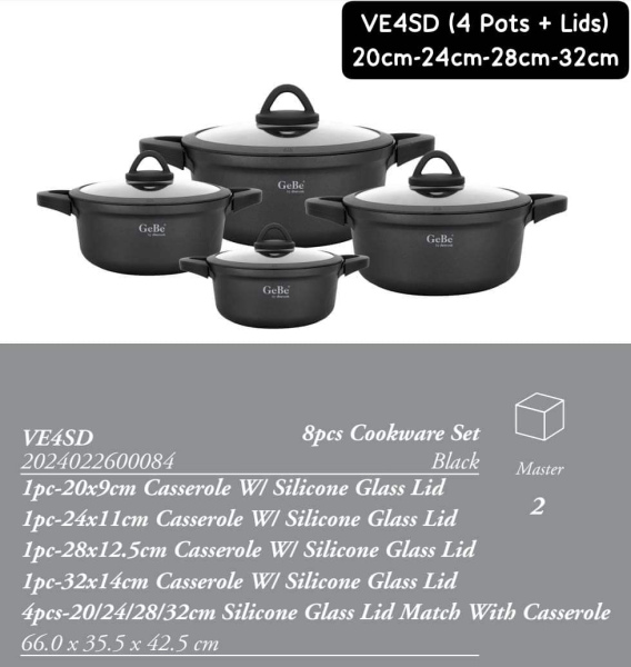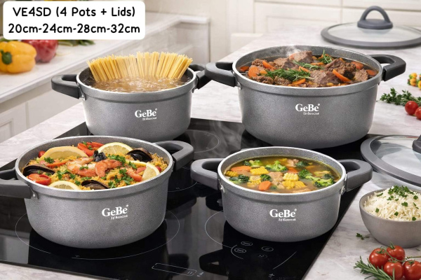 Original Gebe by Amercook Pot Set (4 Pots + 4 Lids) 20cm-24cm-28cm-32cm |