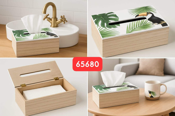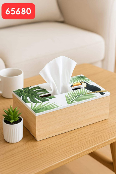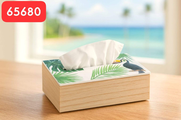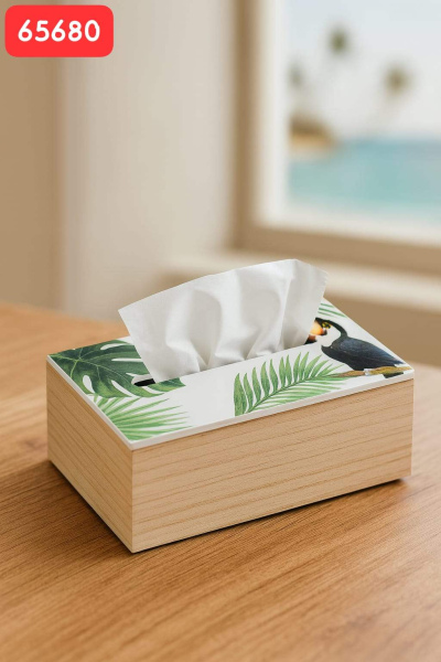 Original Wenko Supreme High Quality Wooden Tissue Box "Tropical Style - Tucan"